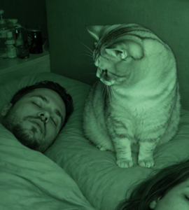 Artık biliyoruz: geceleri yatak odamızda düzeni sağlayan kamera değil, kedidir.